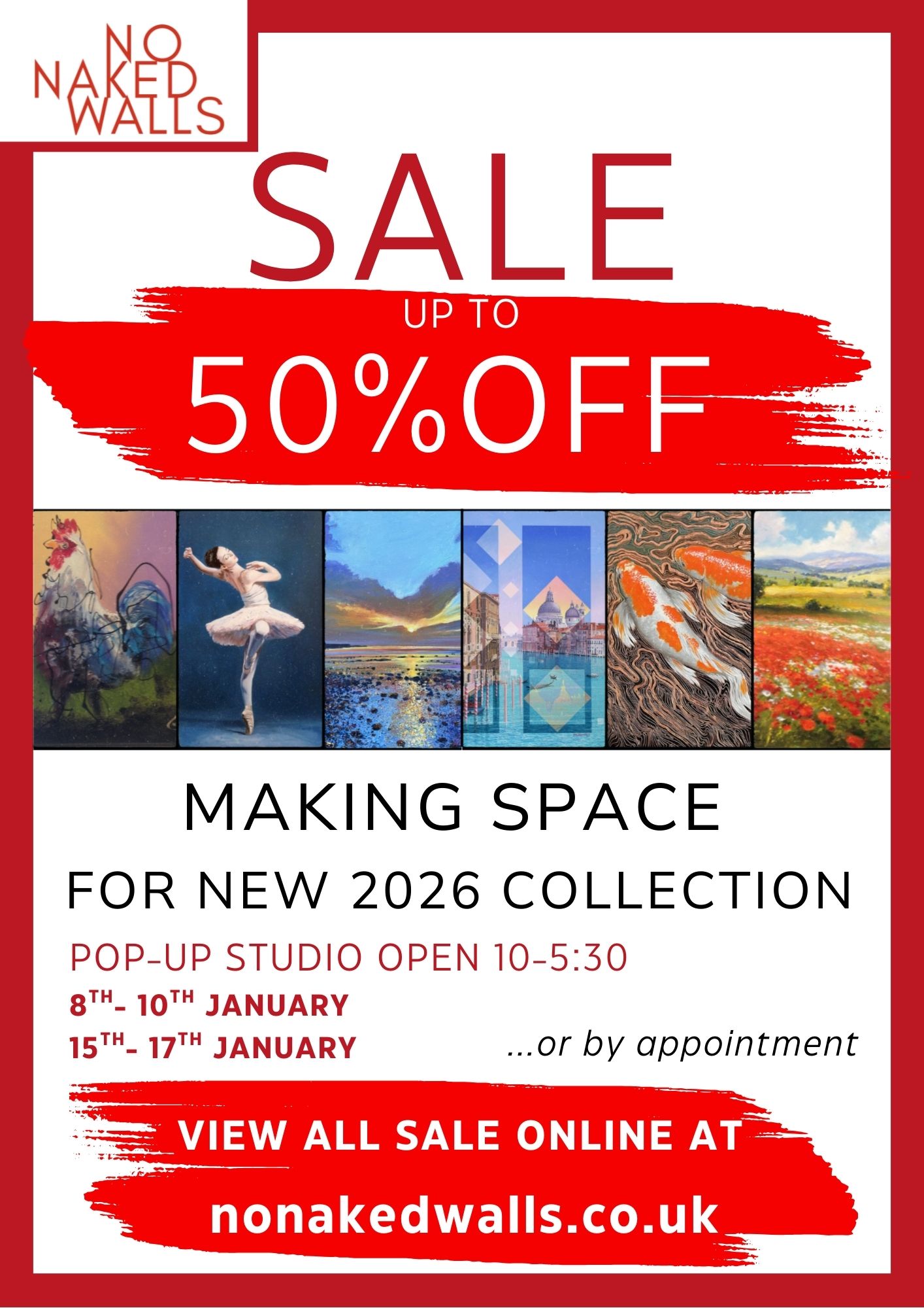 (Please note sale pricing is not listed on my website and only purchasable through No Naked Walls website / gallery on the link provided.)
